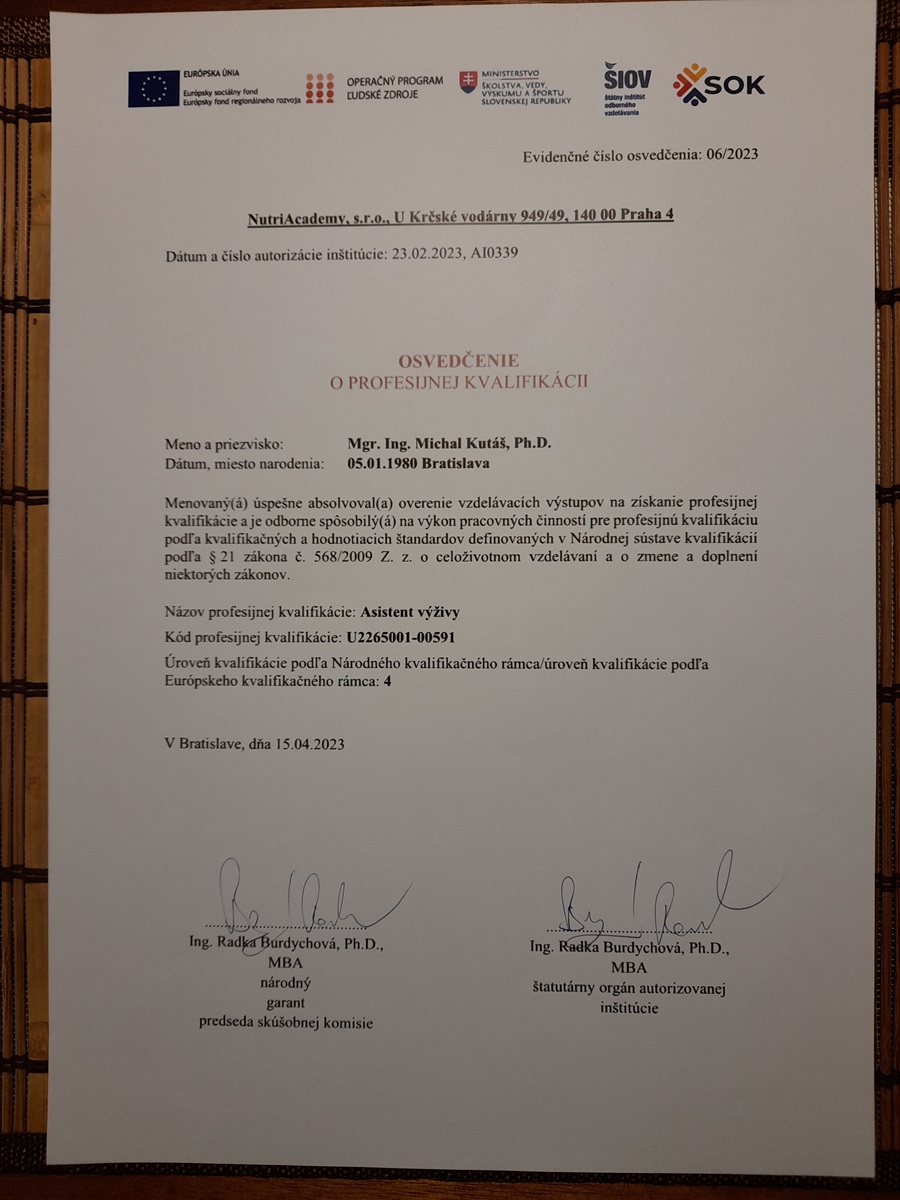 Počas rokov sme sa s manželom o jedle a o pôsobení potravinových doplnkov veľa naučili, spravili si certifikát a zložili dve štátne skúšky. Tiež sme pochopili, že súčasťou zdravého životného štýlu je zdravý vzťah k vlastnému telu a samotnému jedlu. V každodennom živote uplatňujeme princípy vedomého (mindful) stravovania. Som certifikovaný inštruktor v praktickom využití princípov mindfulness. Je pravda, že základ zdravia je v čreve, ako vravel už Hipokrates a ako dnes tvrdí najnovšia veda, ale tiež platí ešte hlbšia múdrosť, ktorú veda začína objavovať: všetko je "v hlave". Náš prístup reflektuje najnovšie vedecké poznatky, a je tiež do veľkej miery holistický.